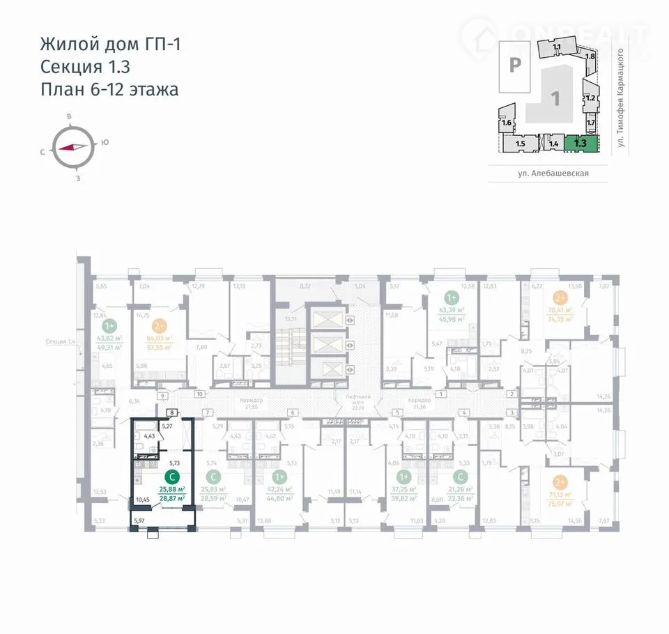 Предлагаем 1 - комнатную квартиру в доме ГП-1 общей площадью: 25,88 кв.м., с типом планировки: Студия.