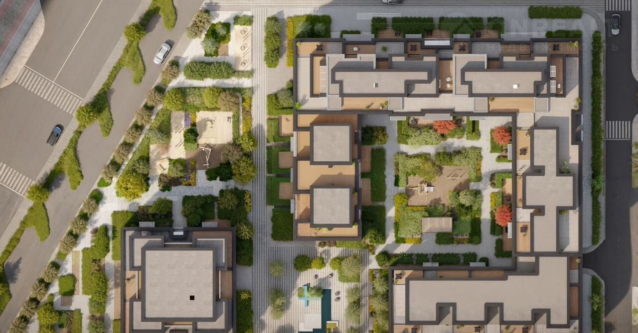 В 2030 году здесь появится квартал, состоящий из урбан-вилл, таунхаусов, секционных домов и башни. Вокруг уже сформирована необходимая инфраструктура: детские сады, школы, спортивный комплекс, продуктовые магазины, аптеки, кофейни, рестораны и салоны красоты. Путь до центра города занимает 7 минут на машине.
