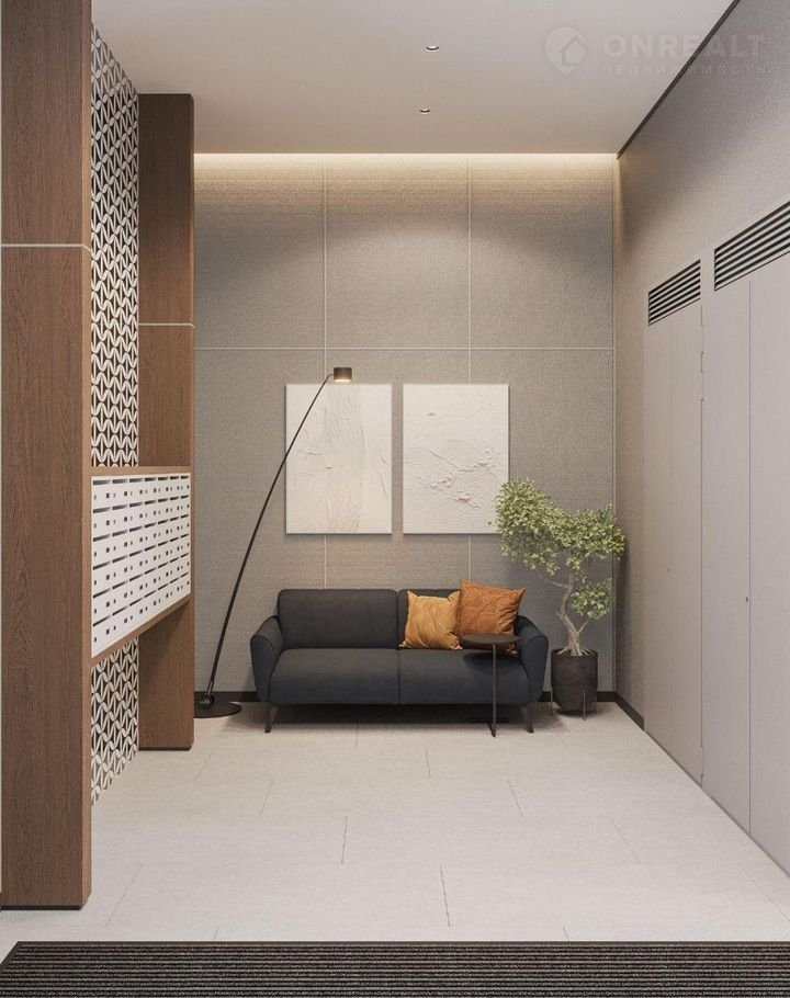 Декоративные перегородки, установленные в лобби, напоминают машрабию — элемент арабской архитектуры в виде узорной решетки. За счет мягкой мебели, многоуровневого освещения теплых оттенков и предметов декора (например, зеркал и картин) холлы воспринимаются как продолжение квартиры.