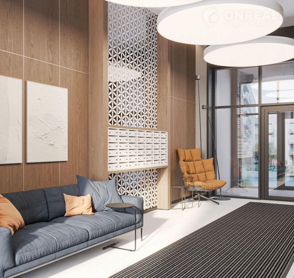 Подъезды «Дома у озера» с прозрачными входными группами и большими лифтами. Для мест общего пользования архитекторы разработали новую интерьерную коллекцию, вдохновленную эклектичными восточными мотивами. В отделке сочетаются коричневый, желтый и белый цвета, повторяющие колористические решения фасадов.