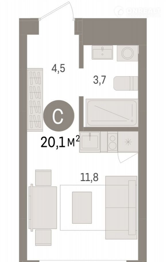Общая площадь 20.1 м2