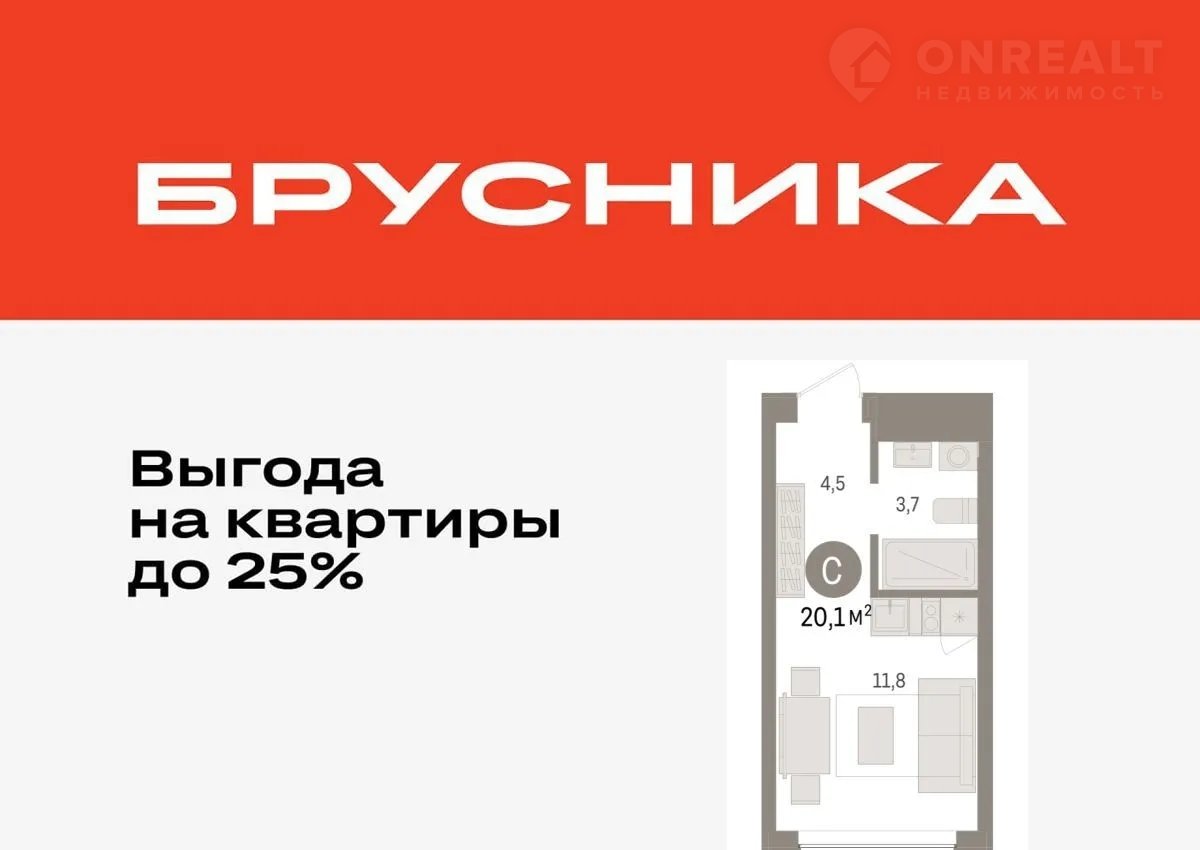 Квартира студия, 20.1 м2, этаж 2 / 7, на продажу в Тюмени, улица Муравленко, 9к3