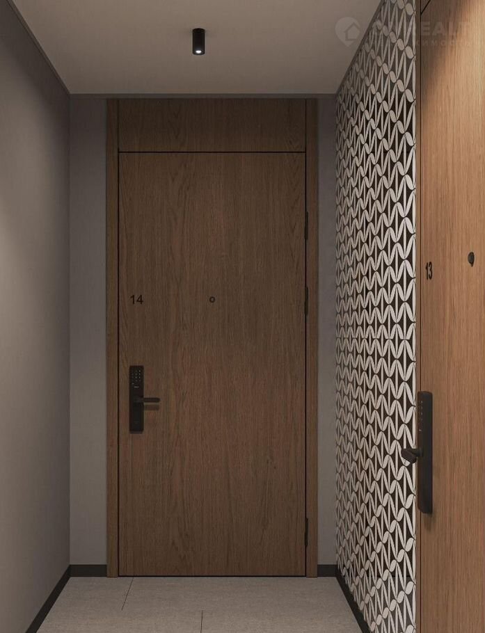 Декоративные перегородки, установленные в лобби, напоминают машрабию — элемент арабской архитектуры в виде узорной решетки. За счет мягкой мебели, многоуровневого освещения теплых оттенков и предметов декора (например, зеркал и картин) холлы воспринимаются как продолжение квартиры.