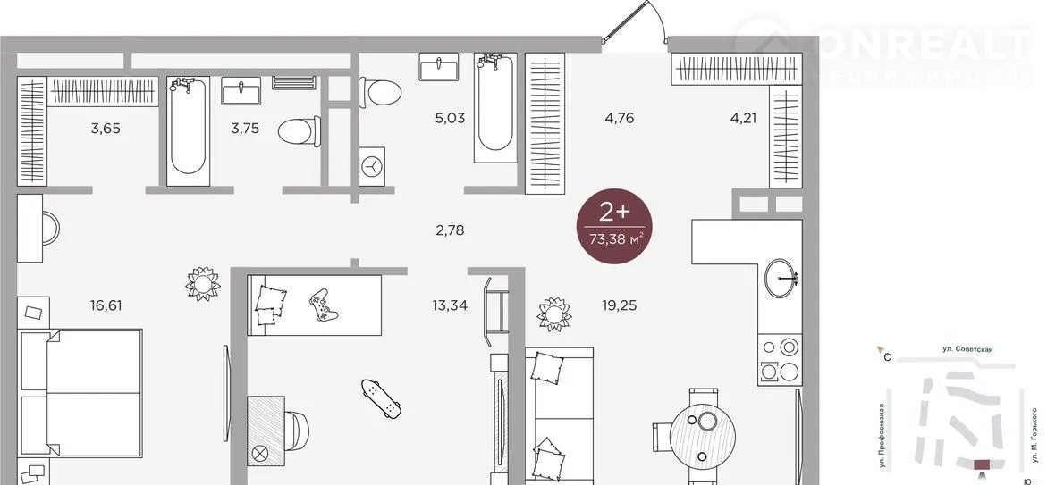 Общая площадь 73.4 м2