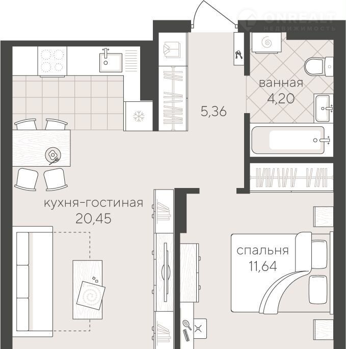 Уютная однокомнатная квартира 41.65 кв.м на 4 этаже. Функциональная планировка позволяет удобно организовать быт, а кухня-гостиная подойдёт для отдыха и общения.