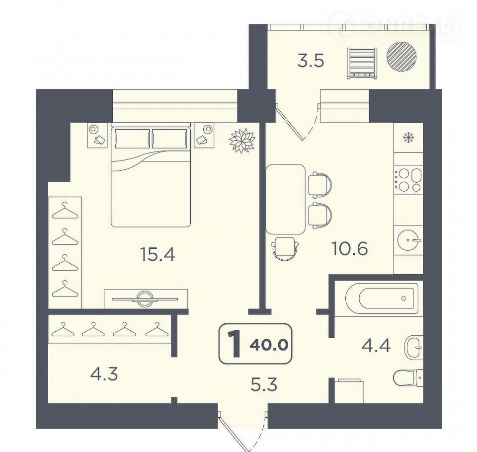 Общая площадь 40 м2