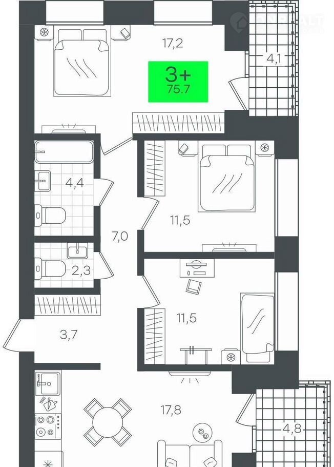 Количество комнат 3