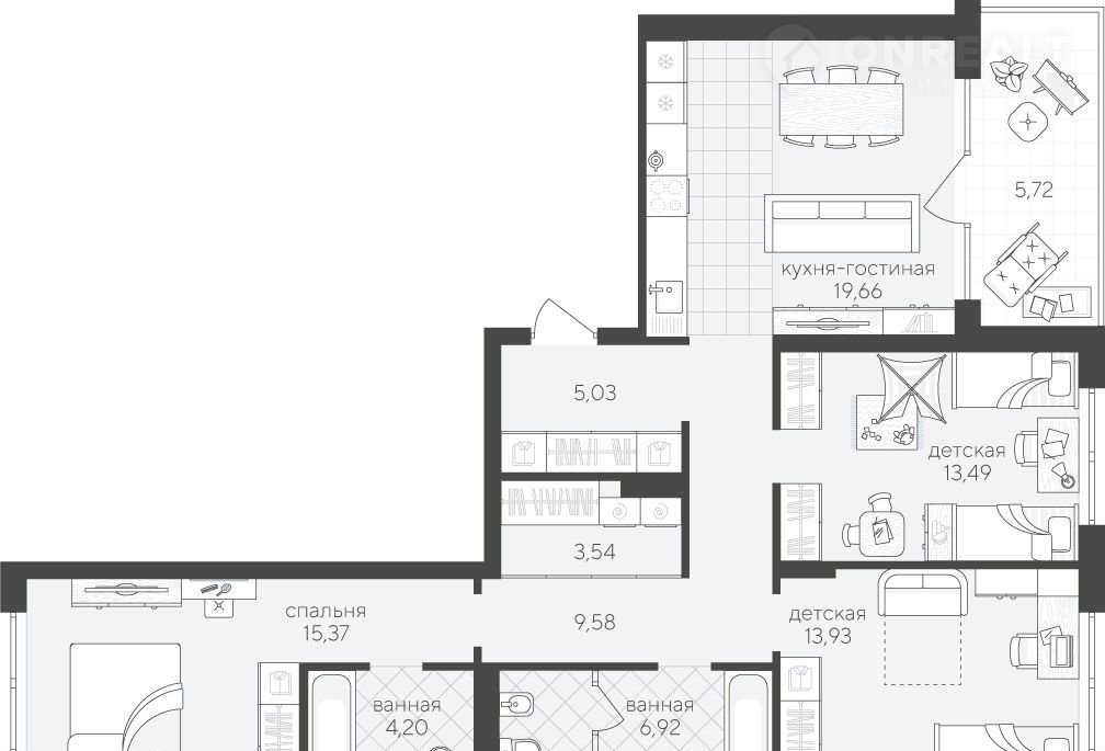 Трёхкомнатная квартира 97.44 кв.м на 4 этаже — отличный выбор для семьи. Большая часть квартиры отведена под личное пространство и включает 3 просторные спальни.