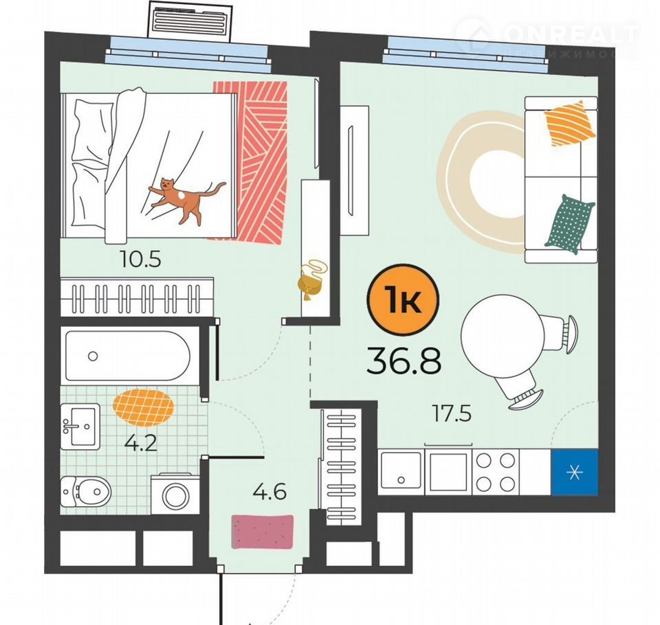 Общая площадь 36.8 м2
