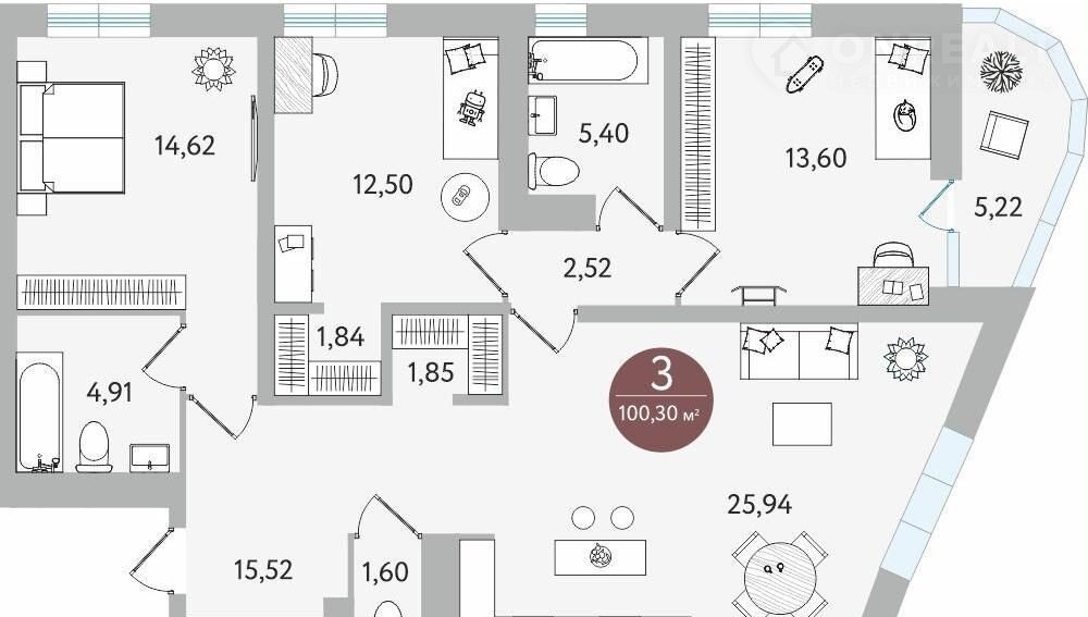 Общая площадь 100.3 м2