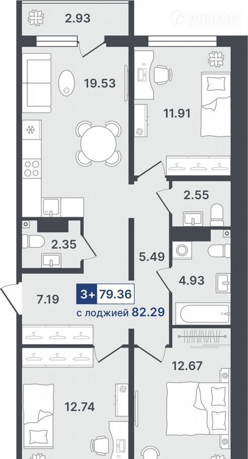 Общая площадь 79.4 м2