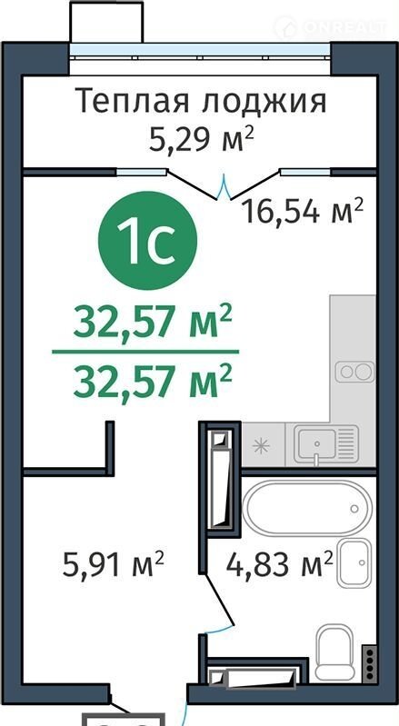 Общая площадь 32.6 м2