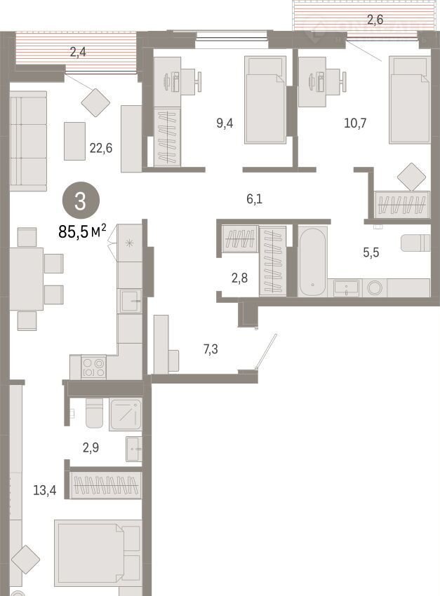 Общая площадь 85.5 м2