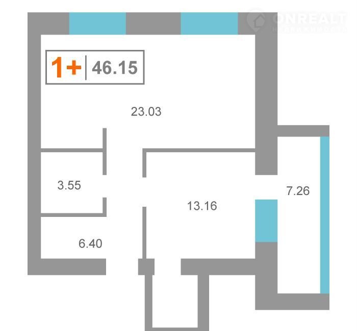 Общая площадь 46.2 м2