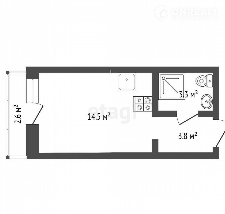 Квартира студия, 24 м2, этаж 4 / 25, на продажу в Тюмени
