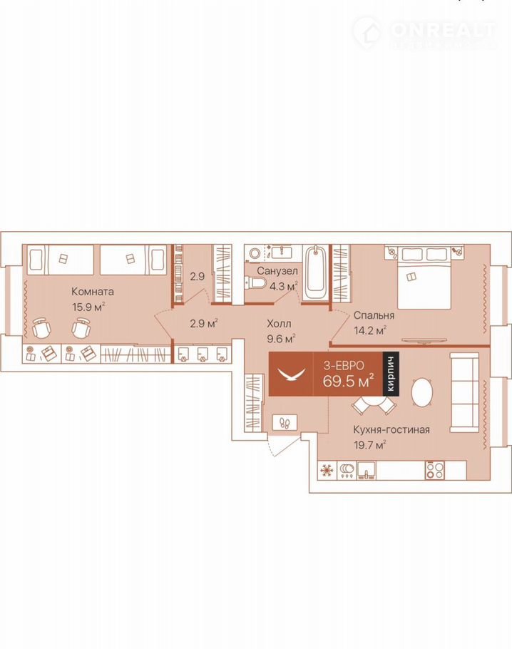 Общая площадь 70 м2