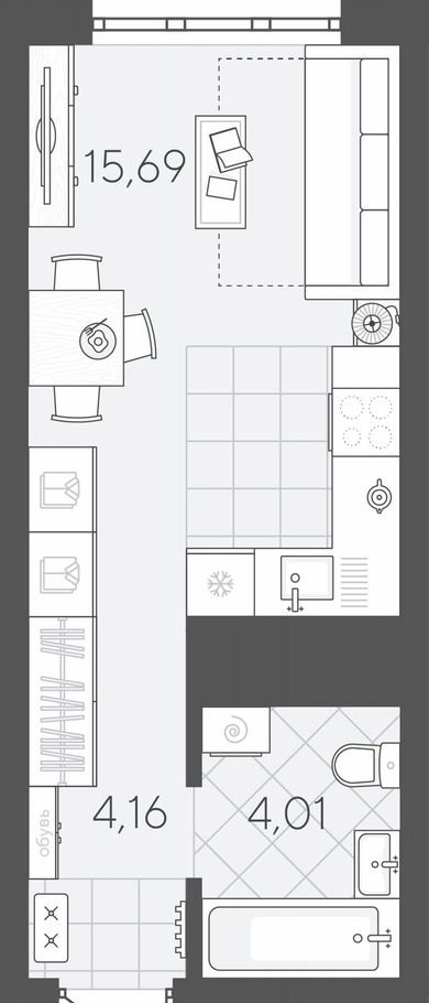 Квартира-студия площадью 23,86 кв.м