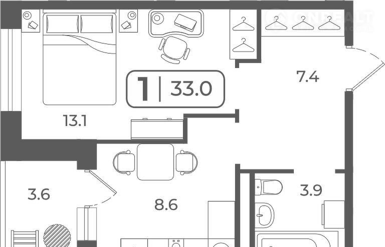 Общая площадь 32.8 м2