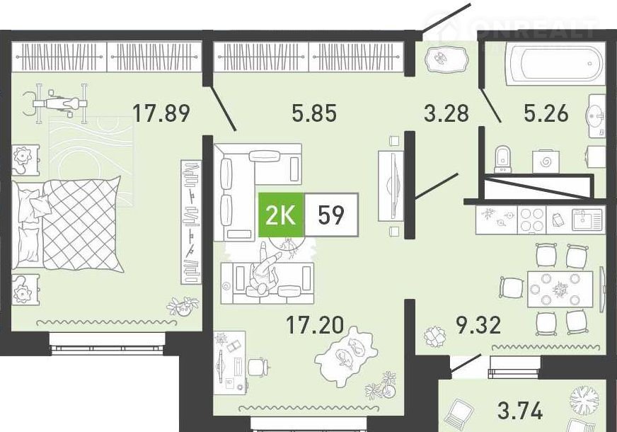 Общая площадь 58.8 м2