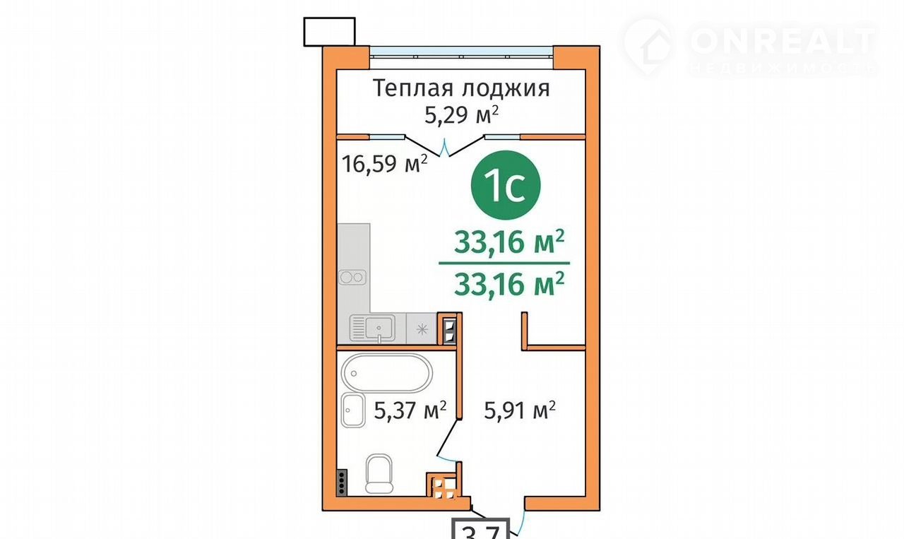 Общая площадь 33.2 м2
