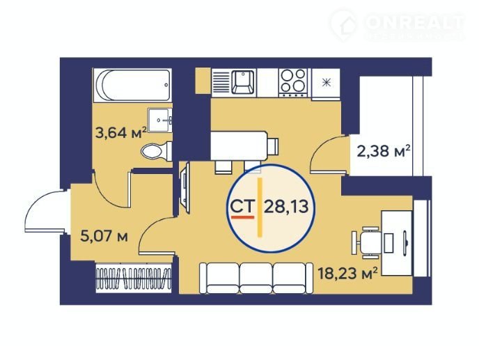 Общая площадь 29 м2