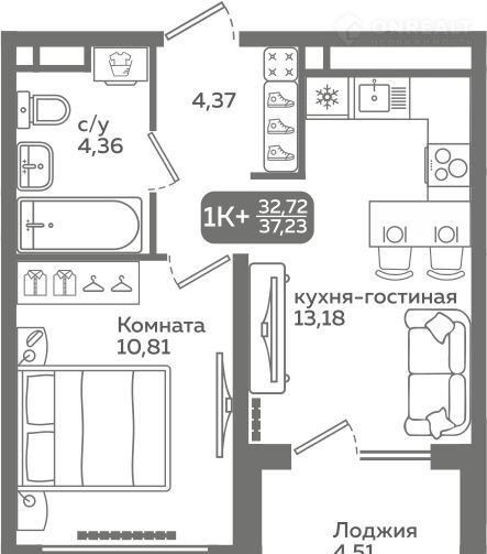 Общая площадь 32.7 м2