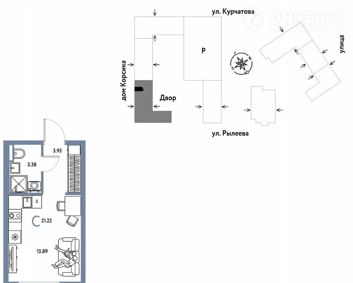 Общая площадь 21.2 м2