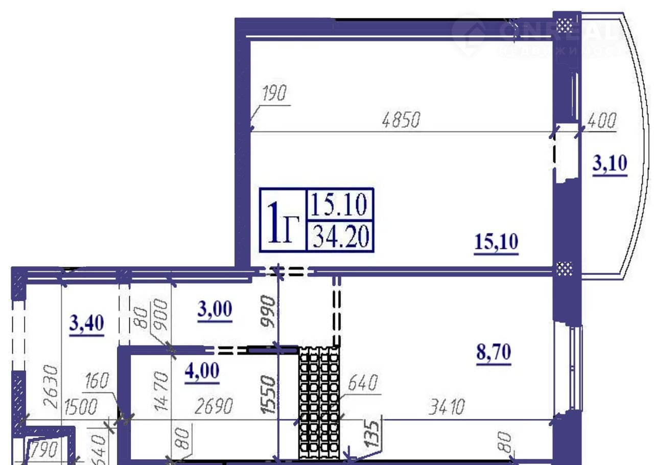 Общая площадь 34.2 м2