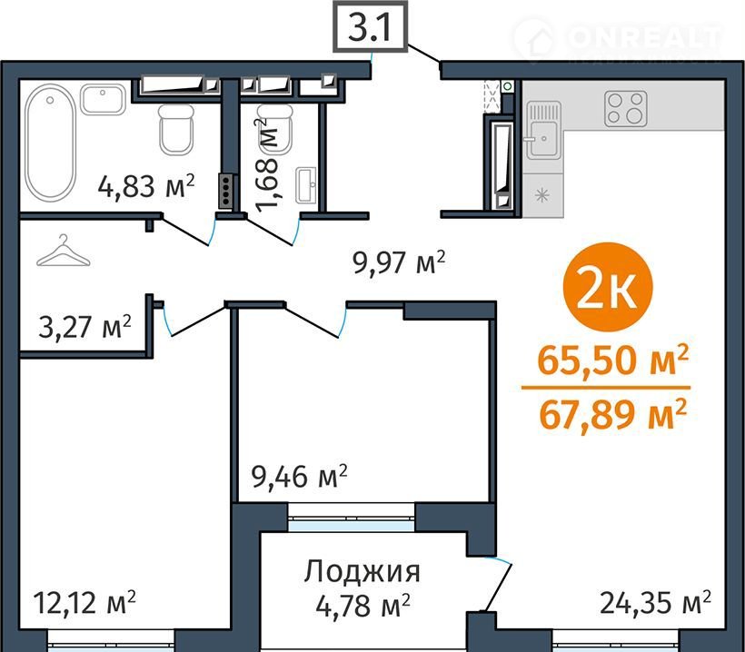 Общая площадь 65.5 м2