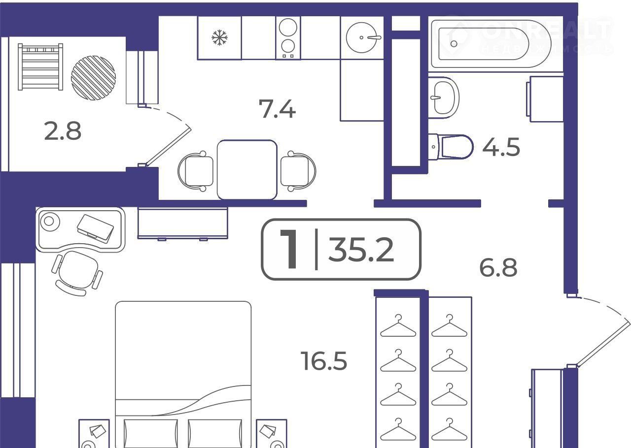 Общая площадь 35.3 м2
