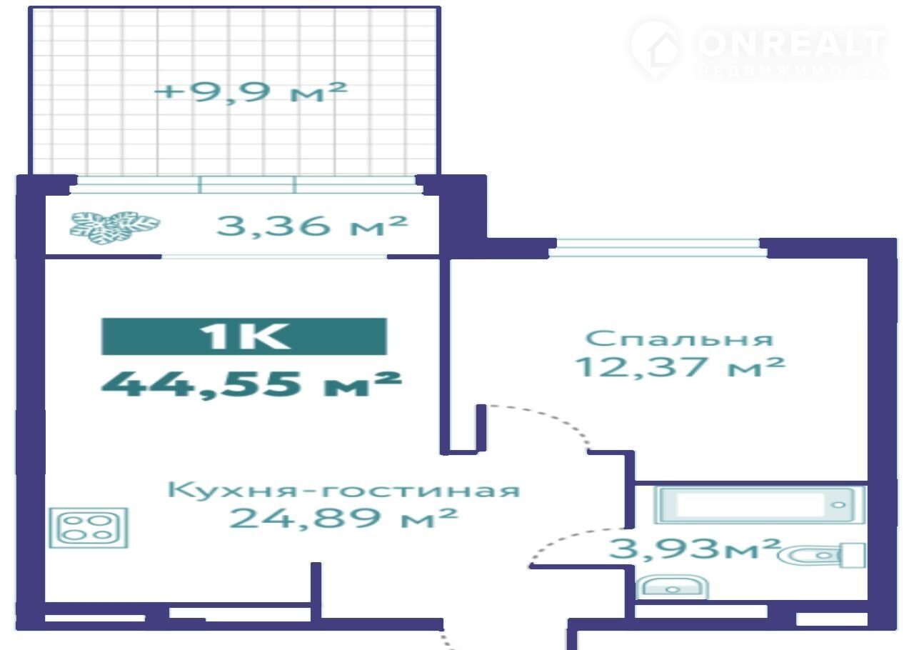 1-комнатная квартира, 44.6 м2, этаж 1 / 10, на продажу в Тюмени, улица Павла Никольского, 10к1блок1