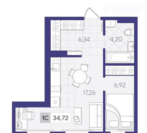 Общая площадь 34.7 м2