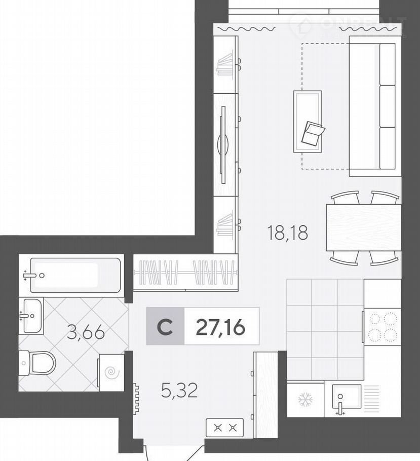 Общая площадь 27.2 м2