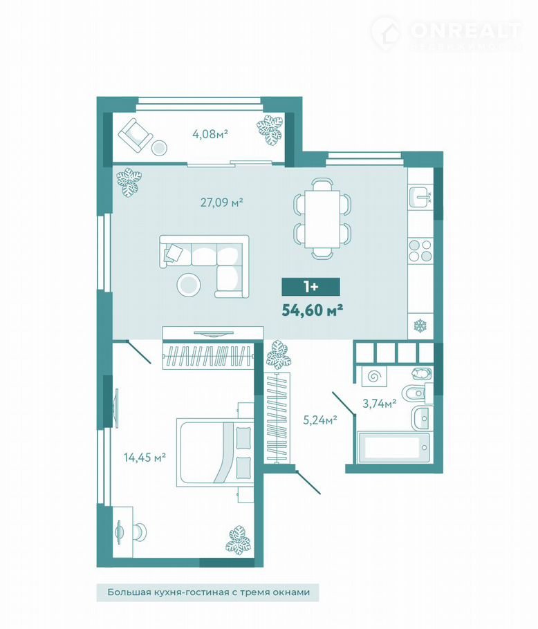 Общая площадь 54.6 м2
