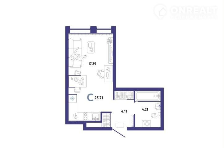 Общая площадь 25.4 м2