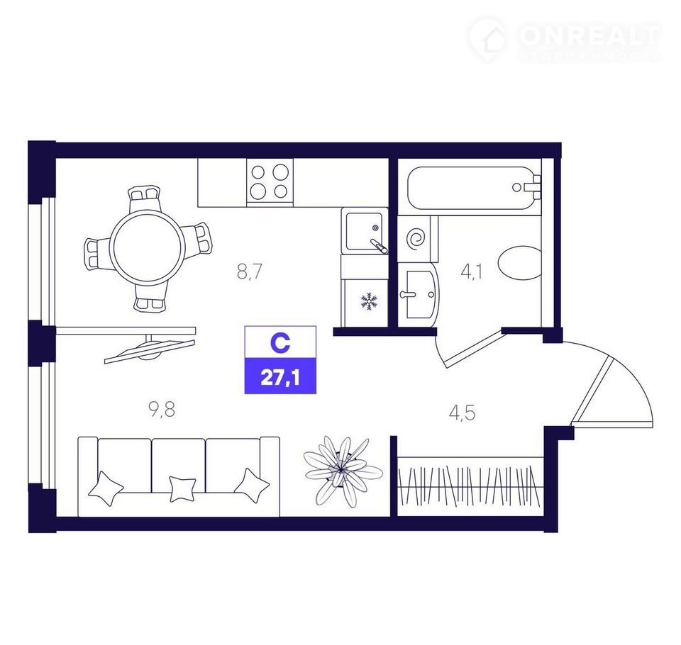 Общая площадь 27.1 м2