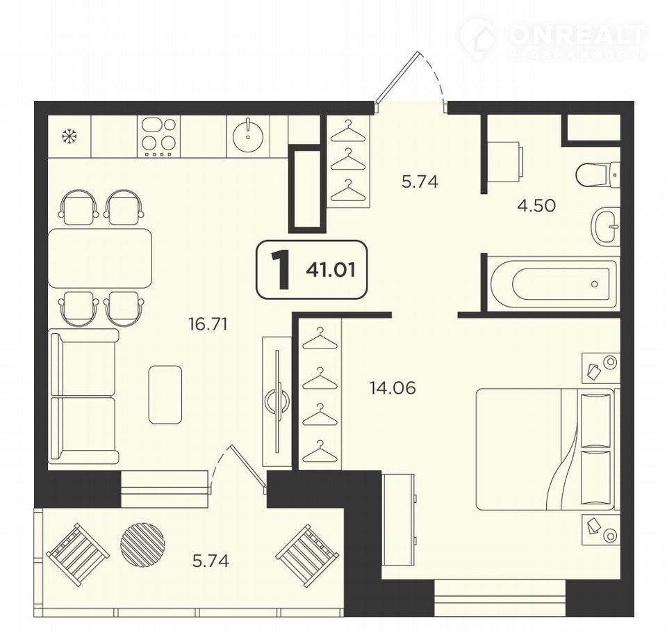 Общая площадь 41 м2