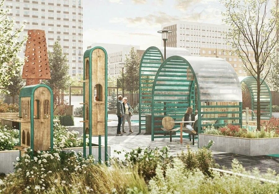 •  Благоустроенные придомовые территории с местами для прогулок