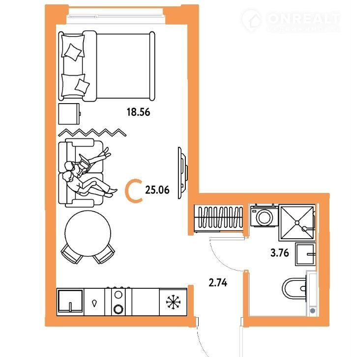 Общая площадь 25.1 м2