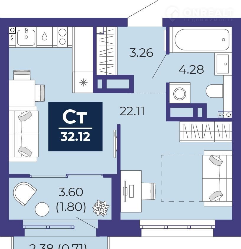 Общая площадь 32.1 м2