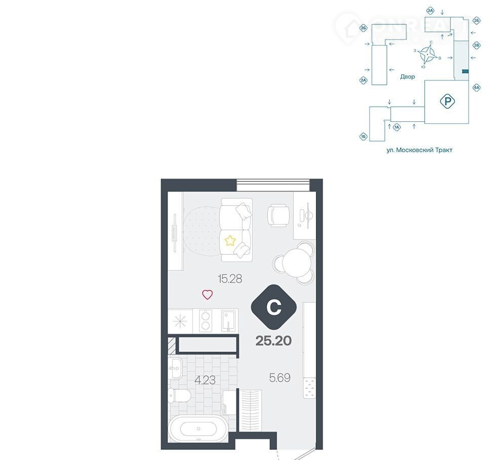 Общая площадь 25.2 м2