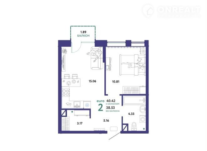 Общая площадь 40.4 м2
