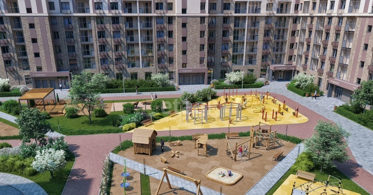 Двор закрытый, с видеонаблюдением. Во дворах будут- тренажеры, площадки для wоrk-оut и многофункциональный игровой корт. Для детей спроектированы игровые комплексы с веревочными лестницами, стеной для скалолазания, горками и качелями.
