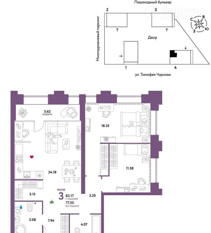 Код предложения ID 592163. 3 комнатная квартира с улучшенной черновой отделкой в монолитно-каркасном доме. Квартира находится на 9 этаже, общая площадь 83.17 кв.м. Дом расположен в г. Тюмень в ЖК ЖК «Звездный». Срок сдачи дома 3 квартал 2025 года. Квартиру можно купить с помощью: наличных средств, ипотеки