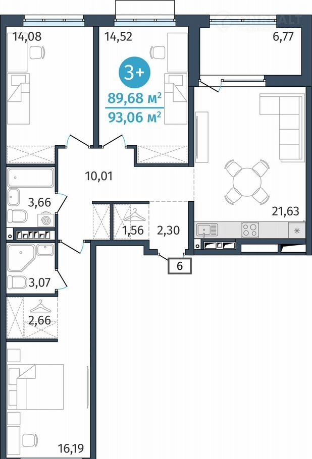 Общая площадь 89.7 м2