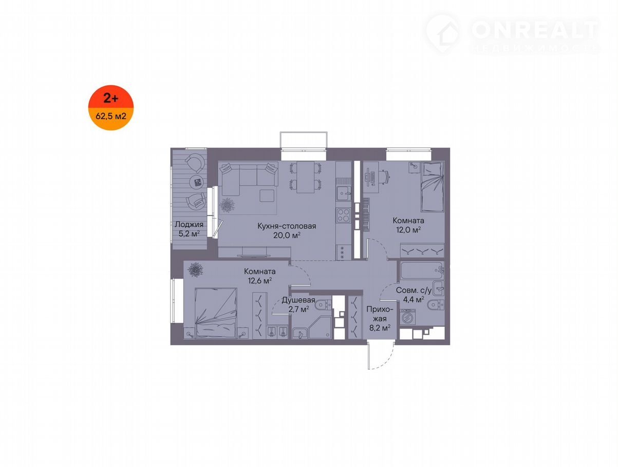 Общая площадь 62.5 м2