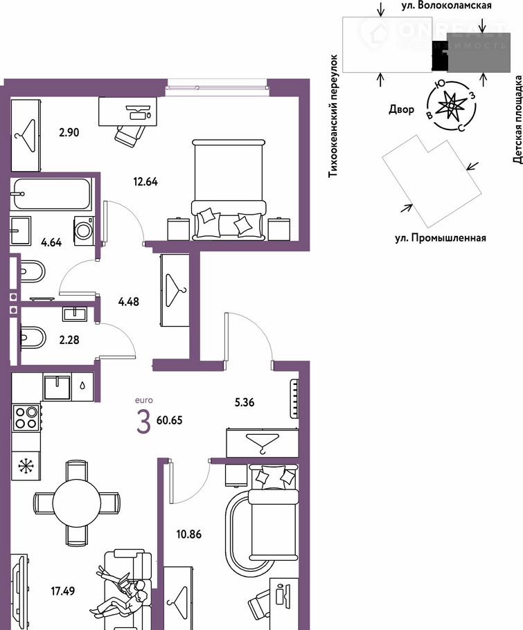 Общая площадь 60.7 м2