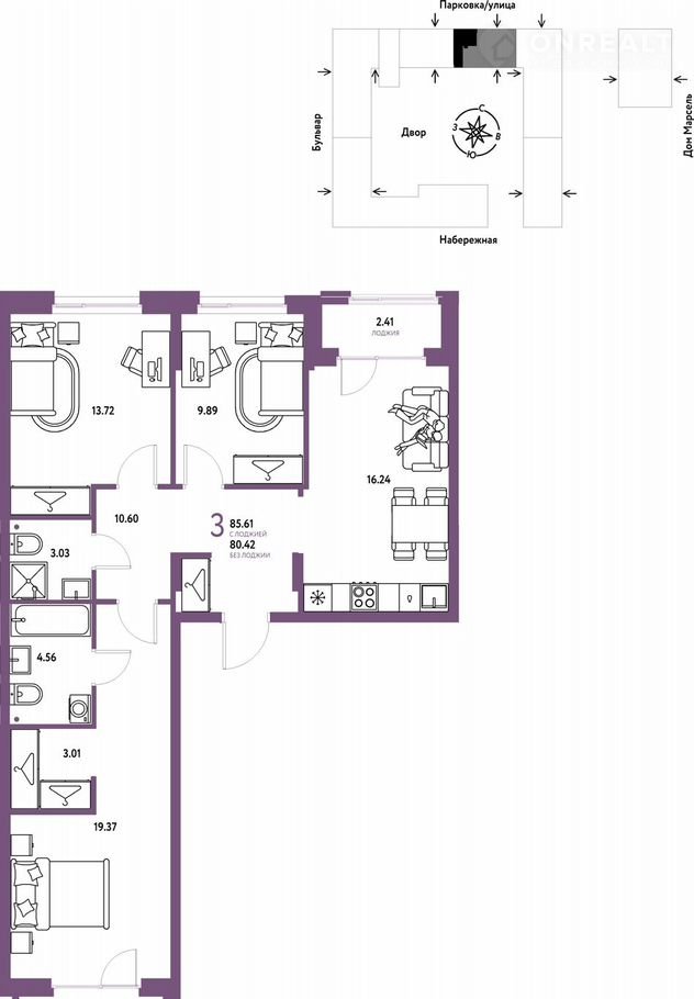 Общая площадь 85.6 м2