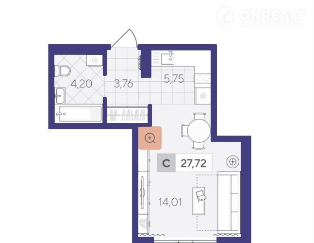 Общая площадь 27.7 м2