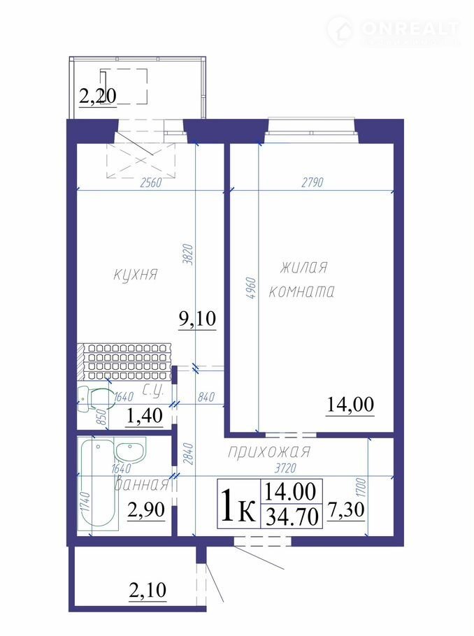 Общая площадь 34.7 м2